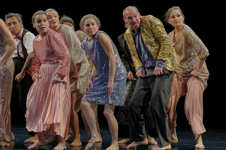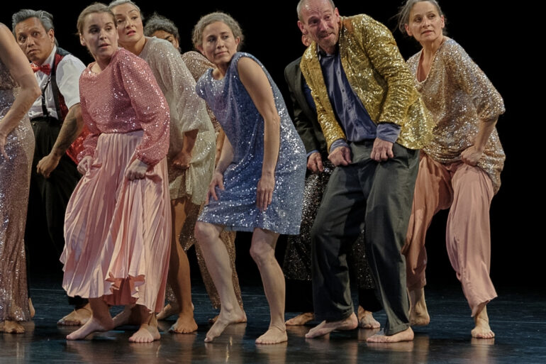 Sur scène, 6 femmes et 4 hommes, de 25 à 55 ans, tous en métamorphose vers la vieillesse, nous montrent que cette étape de la vie n’empêche pas la beauté, la rencontre des corps, même affaiblis, les bonheurs partagés et l’harmonie.